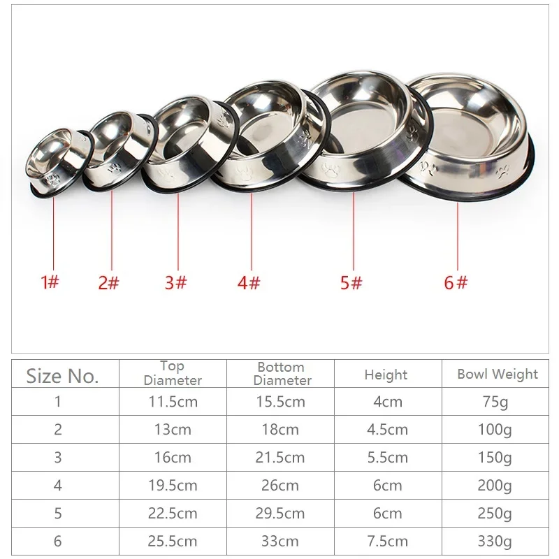 Quality Paw Stainless Steel Pet Dog Bowl Feeder Skidproof Anti-ant Shape Cat Dog Bowls Food Accessories Pet Supplies 6 Sizes